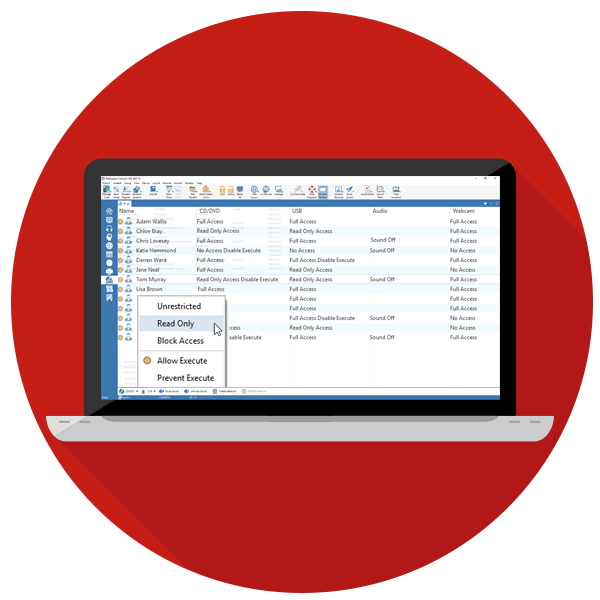 NetSupport School Windows Tech Console (V11+) 보안 정책을 적용 할 수 있습니다. 모든 PC는 사전 정의된 정책 세트와 비교하여 검사하여 안티 바이러스, Windows 업데이트 또는 인터넷 보호와 같이 사용하지 않는 컴퓨터를 즉시 식별 할 수 있습니다. 또한 정책 관리 도구를 사용하면 NetSupport School 제한 사항을 학교 전체에서 영구히 정의하고 적용 할 수 있습니다.